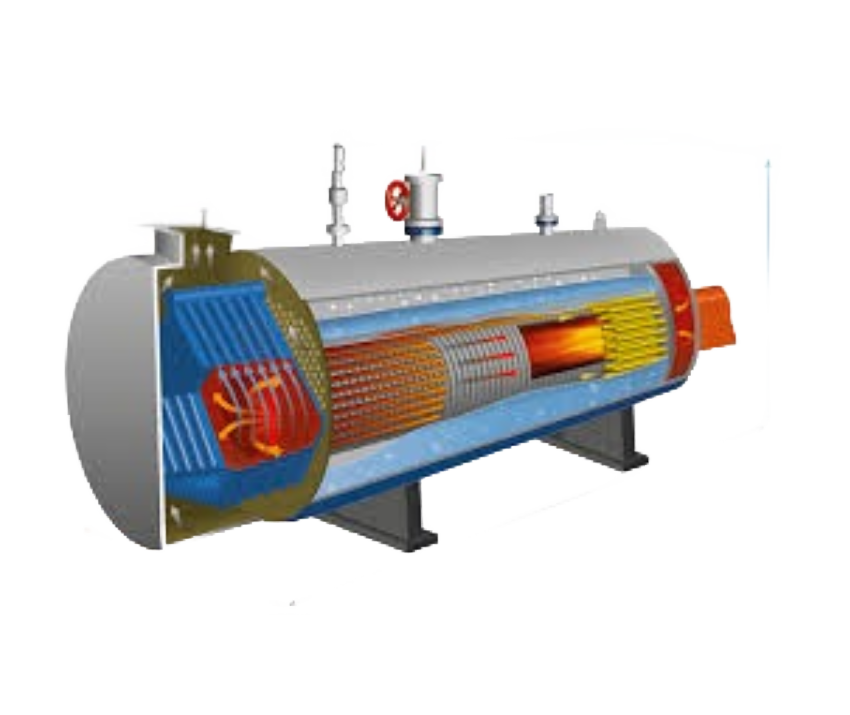 Fire-tube boilers are available in single fire-tube and double fire-tube versions. The single fire-tube boiler with water-cooled reversal chamber and burner transit can supply steam to 35 t/h. The supplied pressure can vary from 0.5 to 40 bar(g). The hot water boilers deliver a capacity of 0.5 to 22 MW.