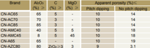alumina-magnesia-carbon based and alumina-carbon based, characterized by